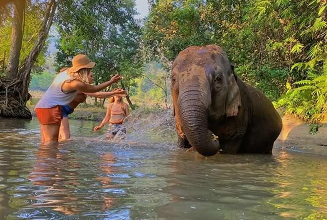 Bathing with Elephants
