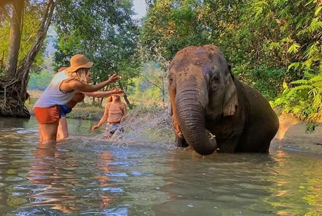 Bathing with Elephants